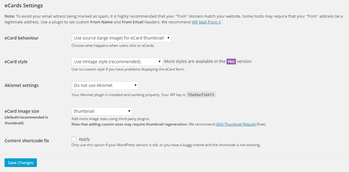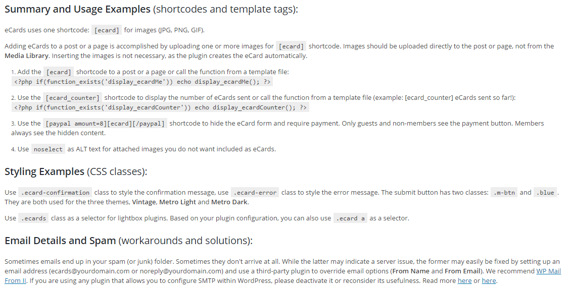 - Include post/page content (useful if you have a certain eCard “story” or message you want to convey)
